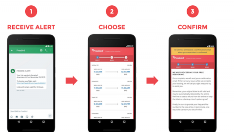 وتتم العملية عن طريق هذه الخدمة خلال ثلاث مراحل، الأولى هي عندما يصل للمستخدم تنبيه يخبره بأن هناك تغيير حدث مع الرحلة الخاصة به، ليتمكن بعد ذلك من اختيار رحلة جديدة عن طريق هاتفه، ومن ثم ببساطة يمكن له تأكيد حجز الرحلة الجديدة ليتم الأمر بهذه البساطة.