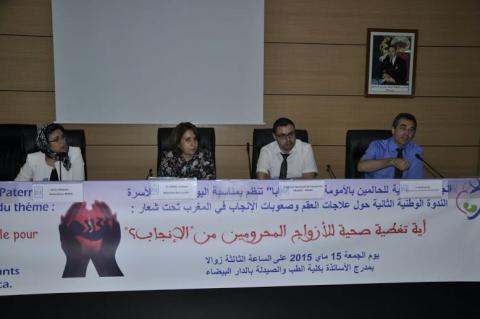 بمناسبة اليوم العالمي للأسرة، نظمت الجمعية المغربية للحالمين بالأمومة والأبوة، "مابا" MAPA، الندوة الوطنية الثانية حول التغطية الصحية الأساسية عن علاجات العقم وصعوبات الإنجاب في المغرب، المنظمة تحت شعار "أية تغطية صحية للأزواج المحرومين من الإنجاب؟، يوم الجمعة 15 ماي 2015، بمدرج الأساتذة في كلية الطب والصيدلة بالدار البيضاء.