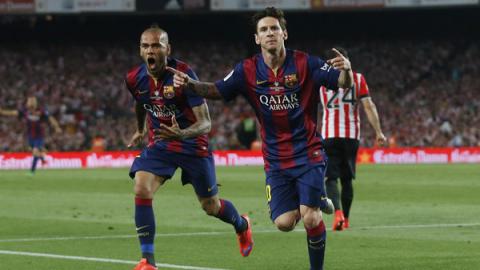 عززبرشلونة الساعي لثلاثية من الألقاب سجله القياسي في كأس ملك إسبانيا لكرة القدم حين أحرز ليونيل ميسي هدفين ليمنحه الفوز 3-1 على أتليتيك بيلباو في المباراة النهائية باستاد نوكامب اليوم السبت.